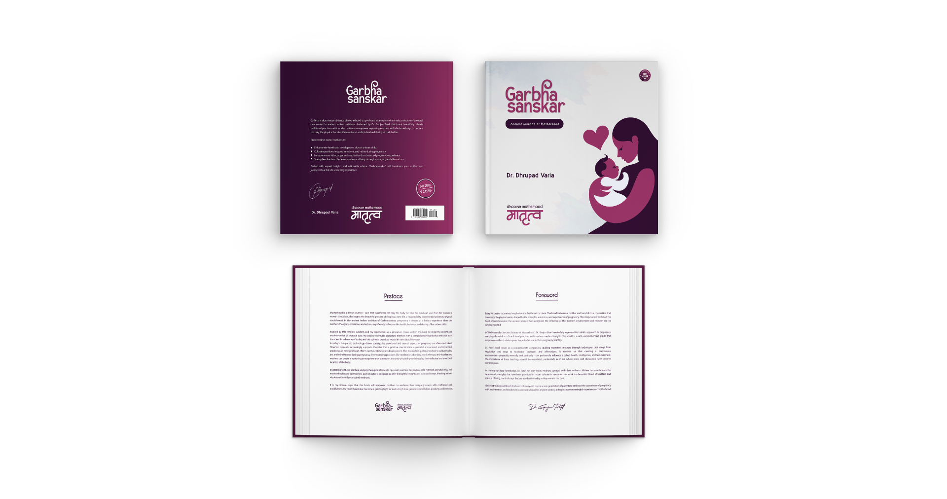 We developed a cohesive brand identity that reflects the essence of Garbhasanskar—nurturing, wisdom, and tradition. The logo encapsulates these values, serving as a visual anchor for the brand. For the book design, we focused on creating a layout that is both informative and soothing, ensuring a seamless reading experience. The print edition was designed with tactile elements to enhance the physical connection, while the eBook/Kindle version was optimized for digital consumption, maintaining the integrity of the design across platforms.